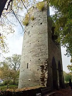 Kattenturm innenstadtseitig, gut zu sehen ist an der Ansatzstelle zur Mauer die ursprüngliche Mauerhöhe