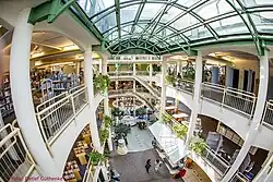 Die Stadtbibliothek stellt zu Zwecken der Bildung, Kultur und Freizeit verschiedenste Medien zur Ausleihe zur Verfügung. Internetplätze,[5] ein digitaler Werkraum[6] u. v. m. runden das Angebot ebenso ab wie Veranstaltungen rund um mehr als 115.000 Medien. Die Stadtbibliothek Gütersloh verfügt über eine Publikumsfläche von mehr als 4.000 Quadratmetern. Im Jahr 2014 wurden 211.500 Besuche und 643.000 Entleihungen gezählt.