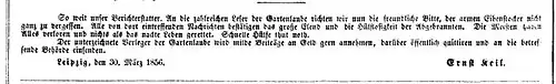 - ↑ Sächsische Dorfzeitung. Anzeiger für Stadt und Land, Nr. 17 vom 25. April 1856, S. 136 (Link zum Digitalisat)