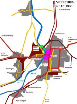 - ↑ Werner Föll: Chronik der Stadt Heilbronn. Band X: 1970–1974 , Heilbronn 1999, [Einleitung ab XLI Die Verbesserung der Verkehrswege].