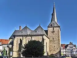 Die Kirche steht auf dem ehemaligen Kirchhof der Stadt, der an drei Seiten von den ihn umgebenden Straßen durch eine Mauer abgegrenzt ist. Die an den Außenmauern der Kirche aufgestellten Grabsteine stammen jedoch von dem bereits ab 1556 genutzten Friedhof beim Eulenturm vor der Stadtmauer. Ihre Architekturgrundform ist in niederhessischen Stadtkirchen des späten Mittelalters öfters anzutreffen.