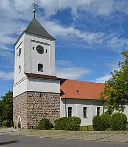 Das Gebäude besteht aus einem querrechteckigen Turm und einem verputzten Saalbau, der im Kern ein frühgotischer Feldsteinquaderbau aus dem 13. Jahrhundert ist. Das Turmuntergeschoss, ebenfalls aus gequaderten Feldsteinen gemauert, ist größtenteils unverputzt und zeichnet sich durch Schlitzöffnungen und ein spitzbogiges Westportal aus. Im Jahr 1734/35 wurde eine umfassende Erneuerung durchgeführt, die einen dreiseitigen Ostschluss und stichbogige Fenster einschloss. Der Turm wurde nach einem Brand im Jahr 1740 massiv aufgestockt und erhielt ein Oberteil mit Ecklisenen sowie einer geschwungenen Haube, die im Jahr 1838 durch ein Zeltdach ersetzt wurde. Ursprünglich war die Turmhalle durch einen Spitzbogen zum Schiff hin geöffnet. Das von einer Flachdecke überspannte Schiff enthält bemalte Wandfelder mit dem Stadtwappen von 1580 und dem Familienwappen der Familie von der Hagen, die beide im 18. Jahrhundert entstanden sind. Die Gebäudehülle wurde im Zeitraum von 2004 bis 2006 umfassend saniert; 2009/10 folgte der Innenraum.