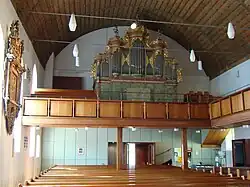 An der westlichen Giebelseite und an der nördlichen Seitenwand ist eine umlaufende Empore eingezogen, auf deren westlichem Teil die Orgel aufgestellt ist. Die ursprüngliche Orgel entstand 1716 bei Georg Friedrich Schmahl in Heilbronn. Sie war einst auf einer heute nicht mehr vorhandenen mächtigen Empore quer über den Chorbogen aufgestellt. Nach mehreren Orgelumbauten wurde von der Orgelmanufaktur E. F. Walcker & Cie. 1966 ein neues Orgelwerk in das historische Barockgehäuse am heutigen Standort auf der Empore über dem Eingangsbereich eingebaut. Dieses Instrument hat einen Umfang von 27 Registern auf zwei Manualen und Pedal.[3]