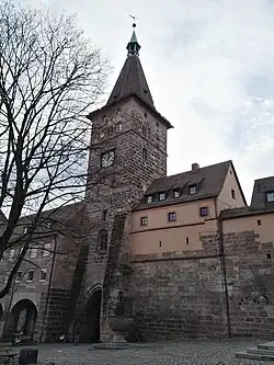 - ↑ zu den Details siehe:Daniel Gürtler: Mauern, Türme und Bastionen. Die Nürnberger Stadtmauer. Sandberg, Nürnberg 2012, ISBN 978-3-930699-73-5, S. 41-40. (sandberg-verlag.de [abgerufen am 16. Juli 2024]).