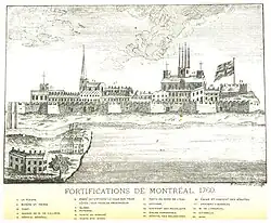 Die Stadtmauern von Montréal entstanden in der späten Phase des städtischen Festungsbaus um 1700. Sie waren etwa 3,5 km lang, dabei bis zu 6,4 m hoch und wurden zunächst 1687 bis 1689 aus Holz gebaut, 1717 bis 1738 als steinerne Stadtbefestigung.