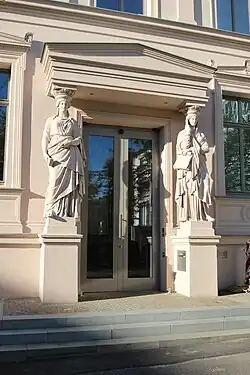 ![]() Stadtmuseum Kassel, Blick auf das Hauptgebäude und den Eingang, im Hintergrund rechts der neu errichtete Turm | |
