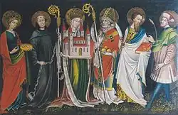 - Die Sechsheiligentafel mit den Heiligen Kunigunde und Lucia, Leonhard, Nikolaus, Bartholomäus und Briccius von Thomas von Villach (1470/1480)