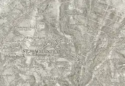 - ↑ 2735-1 Jáchymov - dříve Joachimsthal Císařské povinné otisky stabilního katastru 1 : 2 880 (Katasterkarte von 1842 mit Stadtteich und Plattnergraben), abgerufen am 20. Juni 2022.
