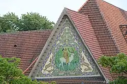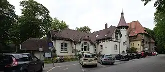 Als Restaurant „Waldschänke“ und Kurhaus wurde der erste Teil des heutigen Gebäudekomplexes 1901/1902 nach Plänen des Architekten Hermann Bergerfurth (1874–1909) zur gastronomischen Ausstattung eines von Fritz Rosorius (1845–1906) entworfenen Landschaftsparks erbaut. Grundlage war eine Schenkung des Krefelder Seidenbarons Wilhelm Deuß. Der Stifter Wilhelm Deuß und der Krefelder Bürgermeister Ernst Küper eröffneten das Gebäude am 8. Juli 1902. Nach einer weiteren Stiftung von Deuß konnte die Anlage in den Jahren 1910/1911 durch einen Anbau mit Veranstaltungssälen und Terrasse beträchtlich erweitert werden. Die Pläne hierzu lieferte der Jugendstil-Architekt Georg „Jörg“ Bruggaier (1878–1951), der kurz zuvor auch das Klärwerk Krefeld entworfen hatte. Gestalterische Markenzeichen des Anbaus sind das voluminöse Walmdach mit Fledermausgauben und der zentrale Dreiecksgiebel an der Nordseite. Das Giebelfeld schmückt ein monumentales Jugendstil-Mosaik von Adolf Münzer, das die Göttin Artemis (Diana) auf der Kerynitischen Hirschkuh mit einem schwarzen Raben[1] zeigt.