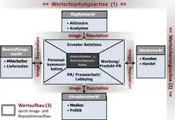 - die Kommunikation mit Anteilseignern und Akteuren des Kapitalmarktes, um die benötigte Liquidität für den Wertschöpfungsprozess abzusichern und Wachstum zu finanzieren (Finanzkommunikation).