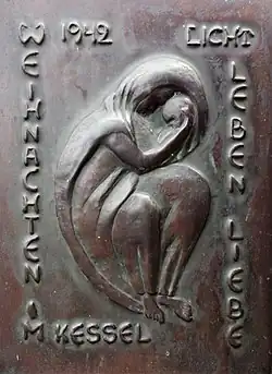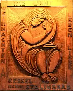 Der evangelische Pastor und Lazarett-Oberarzt Kurt Reuber schuf eine Holzkohlezeichnung, die eine sitzende Frauengestalt zeigt. Ähnlich einer Schutzmantelmadonna birgt sie unter dem Mantel ein Kind, das sie liebevoll ansieht und ihm Schutz und Geborgenheit gibt. Die Darstellung trägt die Umschrift „1942 Weihnachten im Kessel – Festung Stalingrad – Licht, Leben, Liebe“.