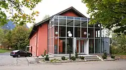 - Gemeindesaal mit Fassadengemälde Ritter von Rudberg, Ruine Diebschlößle und Bergknappen von Konrad Honold aus dem Jahre 1964.