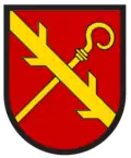 Blasonierung: „In Rot ein goldener Astschrägbalken, einen aus dem rechten Schildunterrand wachsenden, linksgewendeten, goldenen Abtsstab kreuzend.“ |