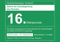 - ↑ Stand der Gesetzgebung (GESTA.online) ( vom 24. Oktober 2009 im Internet Archive)