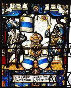 Seit der Reformation wurde unter dem Wappen oft der lateinische Wahlspruch Post tenebras lux gezeigt. Ebenfalls seit der Reformation wird das Wappen von einer halben Sonne mit dem Jesus-Trigramm IHΣ gekrönt.