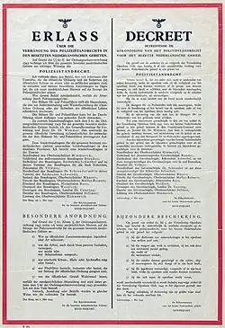 Am 1. Mai 1943 führte die deutsche Besatzungsmacht in den Niederlanden das Polizeistandrecht ein; Zusammenrottung, Arbeitsverweigerung, Waffenbesitz, antideutsche Publikationen und anderer Widerstand konnten danach mit dem Tod auf der Stelle bestraft werden. Versuche, zu diesen Aktivitäten anzustiften oder passiv an ihnen teilzunehmen, konnten ebenfalls mit einer Sammelhinrichtung bestraft werden.
