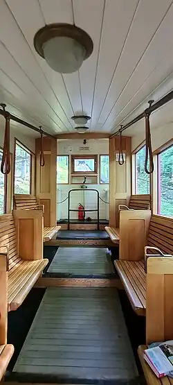 Die Standseilbahn hat ein Gleis, auf dem zwei Wagen gegenläufig verkehren. Diese begegnen sich in einer Ausweiche in der Mitte der Strecke. Die Strecke hat eine Länge von 132,9 m und einen Neigungswinkel von 18°. Die Wagen sind aus Holz gefertigt, jeder kann 25 Fahrgäste bei einer Tragkraft von zwei Tonnen aufnehmen. Das System ist mit einer Sicherheitseinrichtung ausgestattet, durch die die Wagen bei Bruch des Zugseiles mit einer automatischen Bremse abgebremst werden. Die Maschinenanlage ist im Keller der oberen Station untergebracht.