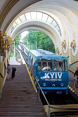 - ↑ a b Киевский фуникулер закроют на ремонт (Die Kiewer Standseilbahn wird für Wartungs- und Reparaturarbeiten geschlossen). ( vom 9. August 2011 im Internet Archive) In: Kiewer Zeitung. 6. September 2006 (russisch).