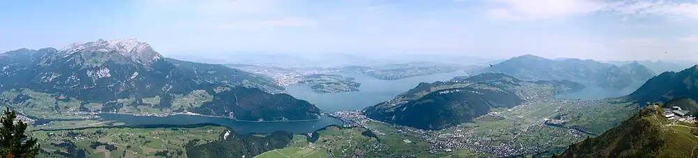 Die Rundsicht reicht von den nahen Alpengipfeln bis hin zu den Vogesen im Elsass (Frankreich) und zum Feldberg im Schwarzwald (Deutschland). Dazwischen sind zehn grössere Seen auszumachen: Zugersee, Wichelsee, Vierwaldstättersee, Sempachersee, Sarnersee, Hallwilersee, Gerzensee, Bannalpsee, Baldeggersee und Alpnachersee.