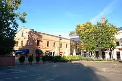 Das Zentrum besteht aus zwei Gebäudekomplexen. Im dreigeschossigen Komplex A (ehemaliges Fabrikgebäude) befinden sich etwa 35 Gewerbetreibende, vor allem Restaurants, Cafés, Boutiquen und Dienstleister. Im eingeschossigen Gebäudekomplex B (alte Lagerhallen) sind ein Biedronka-Supermarkt, eine Rossmann-Drogerie und verschiedene andere Lebensmittelanbieter untergebracht. Auf dem Hof wurde vorübergehend eine Mehrzweck-Bühne errichtet; hier fanden bis zur Eröffnung des neuen Amphitheaters im Kurpark Konzerte und andere kulturelle Veranstaltungen statt. Im gesamten Bereich sind alte Maschinen zur Papierherstellung ausgestellt.