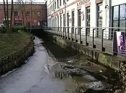 - ↑ Die Bezeichnung basiert vermutlich auf der Fließrichtung der Jeziorka und des parallel laufenden Arbeitskanals