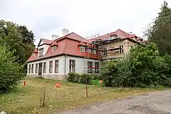 - Das Schloss Sterzendorf (poln. Dwór Miejsce) wurde 1604 errichtet. Im 18. Jahrhundert wurde der Schlossbau im barocken Stil erweitert und umgebaut. Zwischen 1917 und 1919 wurde der Schlossbau nochmals erweitert und im neobarocken Stil umgebaut. Der Schlossbau steht seit 1958 unter Denkmalschutz.[7] 2022 steht es zum Verkauf.[8]