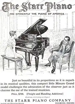 Starr wurde 1872 von James Starr, George Trayser und Richard Jackson als Trayser Piano Company gegründet und bereits sechs Jahre später, im Jahre 1878, in Chase Piano Company umbenannt. Zu diesem Zeitpunkt stieg James Starrs Bruder Benjamin Starr in das Unternehmen ein und zusammen kauften sie in Richmond, Indiana, 23 Acre Land im Whitewater Valley, auf dem sie einen großen Fabrikkomplex bauen ließen, der durch Wasserkraft aus dem nahegelegenen Whitewater River betrieben wurde. 1893 erhielt das Unternehmen seinen endgültigen Namen, Starr Piano Company, und wurde in diesen Jahren zu Richmonds größtem Arbeitgeber. Die Klaviere wurden unter den Markennamen Cumberland, Duchess, Gennett, Krell, Minum, Tayser, Royal, Pullman, Remington, Richmond, Coronado, Schmoller & Mueller und Starr vertrieben.