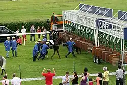 Wenn sich alle Pferde in ihrer jeweiligen Box befinden, drückt der Starter einen Knopf, der gleichzeitig die Türen öffnet, eine laute Glocke ertönen lässt und ein Signal an die Wettschalter sendet, dass das Rennen begonnen hat und keine Wetten mehr angenommen werden.