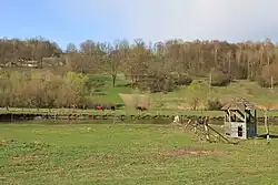 Im Dorf befand sich eine 1583 errichtete Burg, die in der zweiten Hälfte des 19. Jahrhunderts zu einem neugotischen Palast umgebaut wurde. Im März 1944 befand sich im Palast das Hauptquartier von Enej (Petro Olijnyk, Петро Федорович Олійник; 1909–1946), einem Befehlshaber der Ukrainischen aufständischen Armee, weshalb er wohl in den 1950er Jahren vollständig von den Sowjets demontiert wurde.[2]