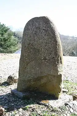 Der weibliche Statuenmenhir südwestlich des Weilers ist nur 1,2 Meter hoch. Die Gravuren sind deutlich zu sehen. Gesicht, Halsketten, Brüste, Arme, Gürtel auf der Vorderseite und Haare auf dem Rücken. Ihre Beine sind abgebrochen (Lage: 43° 43′ 6,6″ N, 2° 45′ 27″ O).