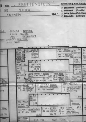 Stauplan MS Breitenstein (NDL) Nordamerika Ostküste (NAOK) wb Luke 3, Zwischendeck 1 und 2 - 1966
