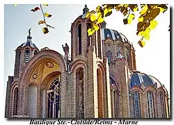 Die Kirche wurde ab 1896 von dem Reimser Architekten Alphonse Gosset (1835–1914) zum 1400. Jahrestag der Taufe des Königs Chlodwig I. errichtet. Dieses Gebäude im neobyzantinischen Stil - in Form eines griechischen Kreuzes und überragt von einer Kuppel – ist der Frau Chlodwigs gewidmet. Die hier unter dem Namen Clotilde verehrte Chrodechild gilt als Ursprung der Bekehrung des Frankenkönigs zum katholischen Christentum. Das Gebäude ist inspiriert vom Petersdom in Rom und der Kirche St-Augustin in Paris. Die Kirche wurde 1902 zur Basilica minor erhoben und 1905 fertiggestellt.[1][2]