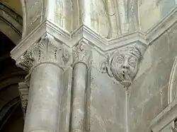 Die Gewölbebögen ruhen zum Teil auf Konsolen, die mit Köpfen skulptiert sind.