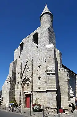 Die zu Ehren der bretonischen Lokalheiligen Thumette, einer der 11.000 Jungfrauen, geweihte Kirche geht auf einen um das Jahr 1200 entstandenen Vorgängerbau im Stil der Romanik zurück, von dem sich Teile der Langhauspfeiler und ein Portal an der Südseite erhalten haben. Dieser Bau war möglicherweise identisch mit der in Kérity urkundlich genannten Kapelle St-Jean, die sich im Besitz des Johanniterordens befand und die so später das Patrozinium hin zur heiligen Thumette gewechselt hätte.[2][3]