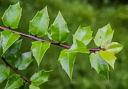 Stamm und Borke von Ilex mitisHeterophyllie bei der Europäischen Stechpalme (Ilex aquifolium)