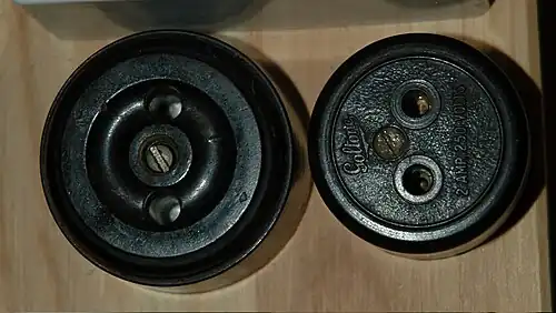 • die 15-Ampere-Version des zweipoligen BS 546 hat dagegen 25,4 mm (1 inch) Stiftabstand und 6,9 mm Stiftstärke.[2]