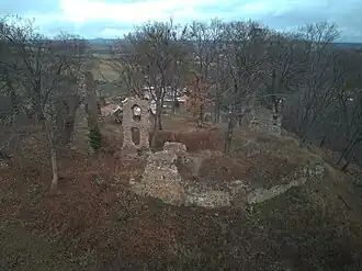 ![]() Die Ruine der Stecklenburg im Luftbild von Süden | |