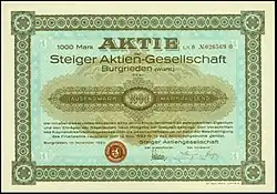 - ↑ a b Michael Schick: Steiger .Die Geschichte einer schwäbischen Autofabrik in den 20er Jahren. Selbstverlag, Laupheim 1999, ISBN 3-00-003913-9, S. 58, S. 67.