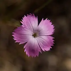 Blüte von der Seite von Dianthus sylvestris subsp. tergestinus