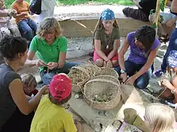 - Die einzelnen Bausteine mit der Dauer von je 30 Minuten werden nach dem Baukastenprinzip je nach Belieben kombiniert: Amulett anfertigen aus Speckstein, Feuerstein bearbeiten, Brot backen im Lehmofen, Ammoniten schleifen.