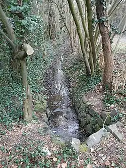 Mündung des Steinbachs (von links hinten) in den Vilicher Bach | ||
