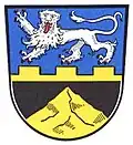 Das Wappen von 1957 ist geteilt durch einen goldenen Zinnenbalken in Blau und Schwarz. Oben befindet sich ein herschauender, rot bewehrter silberner Löwe, unten ein aus dem Schildfuß aufsteigender goldener Berg in Dreiecksform. Der Löwe ist das Wappentier der Grafen von Andechs-Meranien, die im 13. Jahrhundert im Besitz von Steinberg waren. Die Zinnenbalken erinnern an eine Burg, die im 11. Jahrhundert vom ortsadeligen Geschlecht der Steinperc errichtet wurde. Die untere Schildhälfte zeigt den Steinberg.
