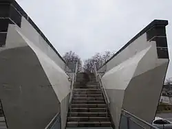 Seit dem Rückbau des Gleises und der Abtragung des westlichen Bahndamms steht die Brücke an diesem Ende mit ihrem Widerlager frei. Eine schlichte Metalltreppe für den Aufstieg wurde installiert. Diese wird durch eine in die Brücke gemauerte steinerne Treppe am oberen Ende des Aufstiegs ergänzt. Statt der alten Gleisanlage wurde ein Fußweg angelegt. Dieser verläuft auf der Ostseite über den dort noch vorhandenen alten Bahndamm.