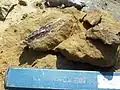 Der Steinbruch ist vor allem für seinen Fossilien- und Mineralienreichtum bekannt.[11][14] Gefunden wurden Calcit (gelb, glasklar, milchig; in verschiedenen Kristallformen, Drusen, mit Fossilien verwachsen), Pyrit-Markasit (Knollen, ausgefüllte Fossilien, teilweise auch Kristallaggregate). An Überresten der Tierwelt fanden sich Zackenbarsch Epinephelus casottii (vollständig erhalten)[15] Otodus megalodon (Verwandter des Weißen Hais, Zähne bis ca. 13 cm groß),[16] Ammenhai Ginglymostoma delfortriei (Zähne), Meißelzahnlippfisch Trigonodon jugleri und Drückerfisch Balistes muensteri (jeweils Gebissreste), Kugelfisch, Igelfisch (Oligodiodon, Kauplatten),[17] Tintenfisch (Sepia vindobonensis, Schulp),[8] Perlboote,[18] Krabben (ganz, Scheren, Panzer; Schwimmkrabbe Portunus monspeliensis;[19] Dairidae),[20] Seeigel (Clypeaster, Schicaster, Conoclypus[21]), Muschelkerne (mit und ohne Schalenerhaltung, Bohrmuscheln).