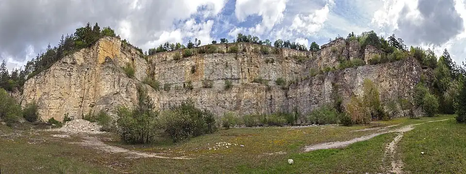 In den bis zu 70 Meter hohen Abbauwänden des ehemaligen Steinbruchs sind die gut geschichteten Kalk- und Mergelsteine des Malms aufgeschlossen. Die Schichtenfolge umfasst hier einen Ablagerungszeitraum von etwa 5 Millionen Jahren. Der hellgrau bis hellgelbe, feinplattige Kalkstein ermöglicht einen detaillierten Blick in die Entwicklung der Lebewelt im Meer des oberen Jura. Das Areal ist vom Bayerischen Landesamt für Umwelt als Geotop (176A017)[1] ausgewiesen und als wertvoll eingestuft. Er wurde 2008 in die Liste der 100 schönsten Geotope Bayerns[2] aufgenommen. Das Gelände ist auch Bestandteil des Landschaftsschutzgebietes Schutzzone im Naturpark Altmühltal (LSG-00565.01, WDPA: 396115), FFH-Gebiet Mittleres Altmühltal mit Wellheimer Trockental und Schambachtal (7132-371, WDPA: 555521819) und Natura2000 Vogelschutzgebietes Felsen und Hangwälder im Altmühltal und Wellheimer Trockental (7132-471, WDPA:555537875).