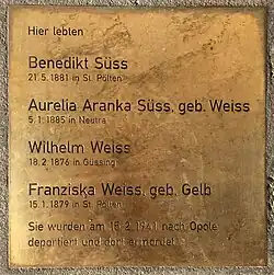 - ↑ Benedikt und Aurelia Aranka Süss, auf juden-in-st-poelten.at