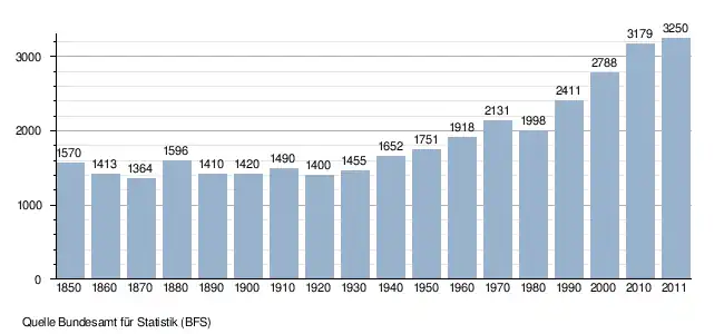 - ↑ Bilanz der ständigen Wohnbevölkerung nach Bezirken und Gemeinden, 1991-2024. Bei späteren Gemeindefusionen Einwohnerzahlen aufgrund Stand 2024 zusammengefasst. Abruf am 28. August 2025