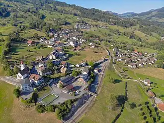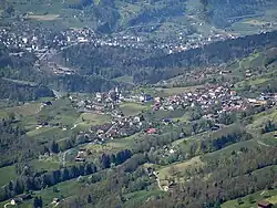 ![]() Luftaufnahme vom Dorf Steinerberg im Sommer 2018