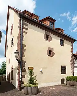 Dieser letzte spätmittelalterliche Steinspeicher in Hofgeismar hat an der Giebelseite ein rundbogiges Portal und Kreuzstockfenster; die Fenstergewände sind aus Sandstein.