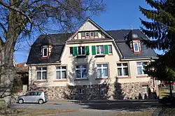 Gegenüber der Kirche wurde 1910 die Volksschule erbaut und 1912 eingeweiht. Der Bau erfolgte im damals üblichen Landhausstil. Der untere Bereich ist als Natursteinsockel ausgelegt. Im Erdgeschoss lagen hinter einer Putzfassade die Klassenräume, der obere Teil des Hauses ist in Fachwerkweise ausgeführt. Im Rahmen der Schließung der Zwergschulen in den 1960er Jahren wurde der Schulstandort aufgegeben. 1971 ging das Haus in den Besitz der evangelischen Kirchengemeinde über und wird seitdem als evangelisches Gemeindehaus genutzt.